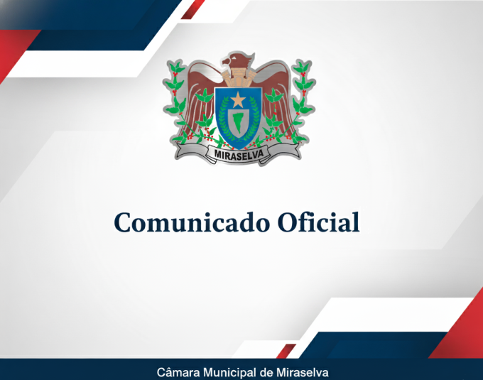 As Sessões Ordinárias e Extraordinárias da Câmara Municipal de Miraselva serão realizadas, temporariamente, na Sala de Reuniões da Prefeitura Municipal de Miraselva, localizada na Avenida Dona Madalena, nº 41, Centro. A decisão foi tomada após laudo técnico apontar danos estruturais no plenário, decorrentes do vendaval e das fortes chuvas de granizo que atingiram o município recentemente.